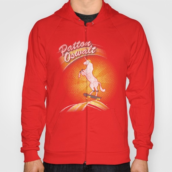 Poster for a Patton Oswalt comedy gig at the Ikeda Theatre in Mesa, Arizona. Unicorns on skateboards!